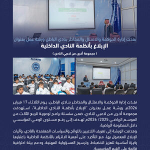 أخبار الباطن نفذت إدارة الحوكمة قراءة المزيد شريك النجاح مجمع قراءة المزيد نفذت إدارة الحوكمة قراءة المزيد ورشة عمل بعنوان قراءة المزيد ورشة عمل بعنوان قراءة المزيد مباراة (الباطن × قراءة المزيد نظمت إدارة الأمن قراءة المزيد ورشة عمل بعنوان قراءة المزيد نظمت إدارة الأمن قراءة المزيد النيجيري هنري ماكينو قراءة المزيد إدارة النادي تقرر قراءة المزيد ورشة عمل توعوية قراءة المزيد إظهار المزيد