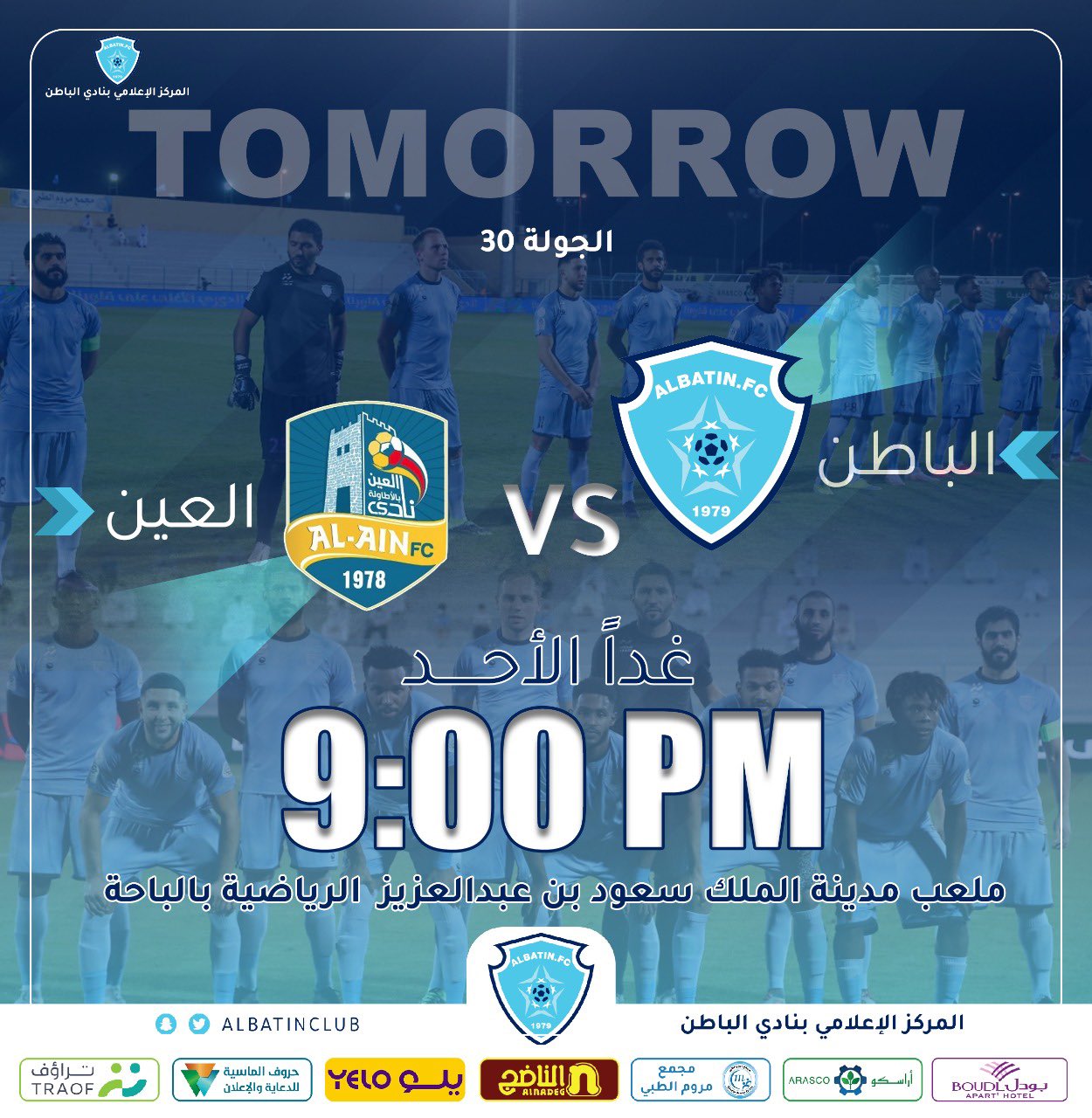 يواجه الباطن في مباراة مصيرية اليوم الاحد في تمام الساعة التاسعة مساءً نادي العين