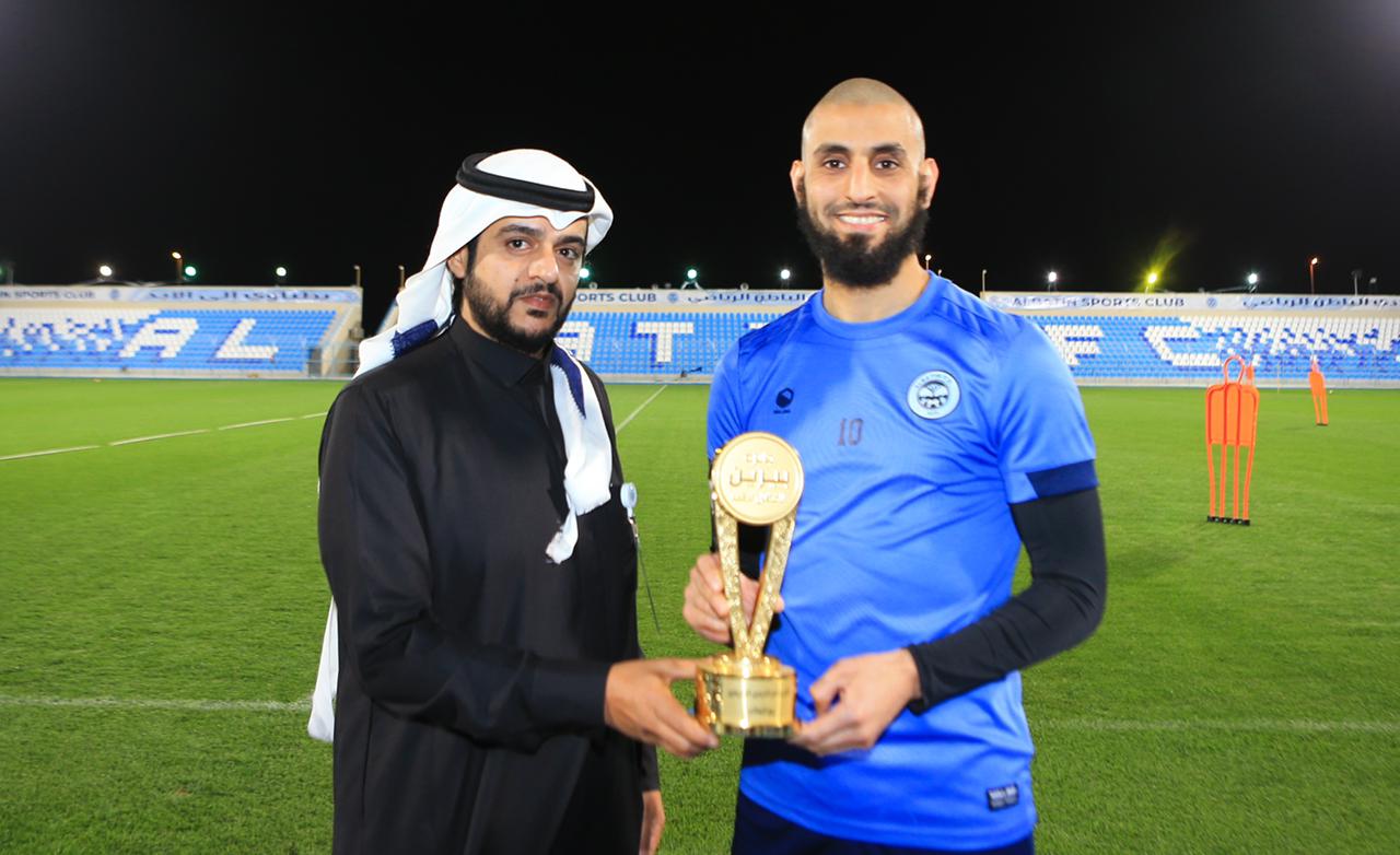 اللاعب يوسف الجبلي يستلم جائزته من مياه بيرين كأفضل لاعب في مباراة الباطن والفيحاء والتي اقيمت ضمن دور ربع النهائي من كأس خادم الحرمين الشريفين