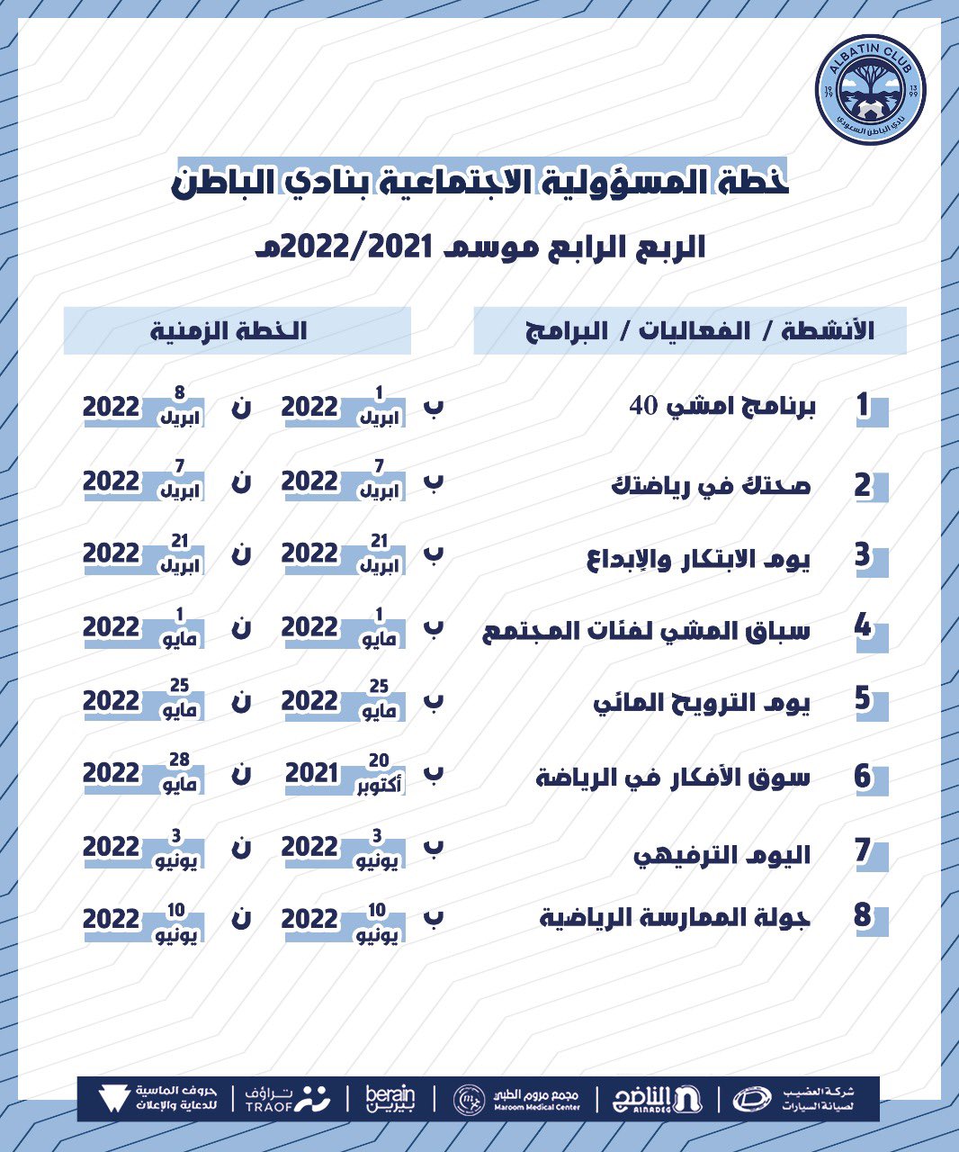 خطة المسؤولية الاجتماعية بنادي الباطن (الربع الرابع موسم 2021/2022م) 30 مارس، 2022 / اخبار النادي, المسؤولية الإجتماعية خطة المسؤولية الاجتماعية بنادي الباطن (الربع الرابع موسم 2021/2022م) Share via: Facebook X (Twitter) LinkedIn More