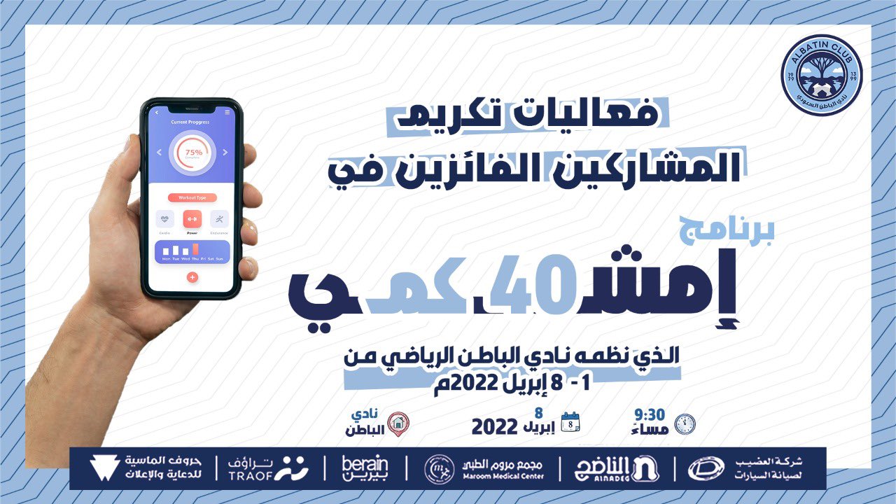 توزيع جوائز الفائزين في برنامج إمشي 40 كم 13 أبريل، 2022 / اخبار النادي, المسؤولية الإجتماعية جانب من فعاليات توزيع جوائز الفائزين في برنامج إمشي 40 كم الذي نظمه نادي الباطن خلال الاسبوع الاول من شهر رمضان الكريم Share via: Facebook X (Twitter) LinkedIn More