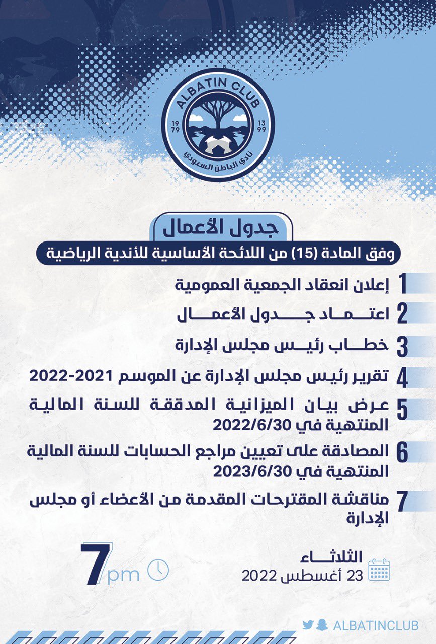 جدول أعمال الجمعية العمومية العادية لنادي الباطن 22 أغسطس، 2022 / اخبار النادي, المسؤولية الإجتماعية جدول أعمال الجمعية العمومية العادية لنادي #الباطن Share via: Facebook X (Twitter) LinkedIn More