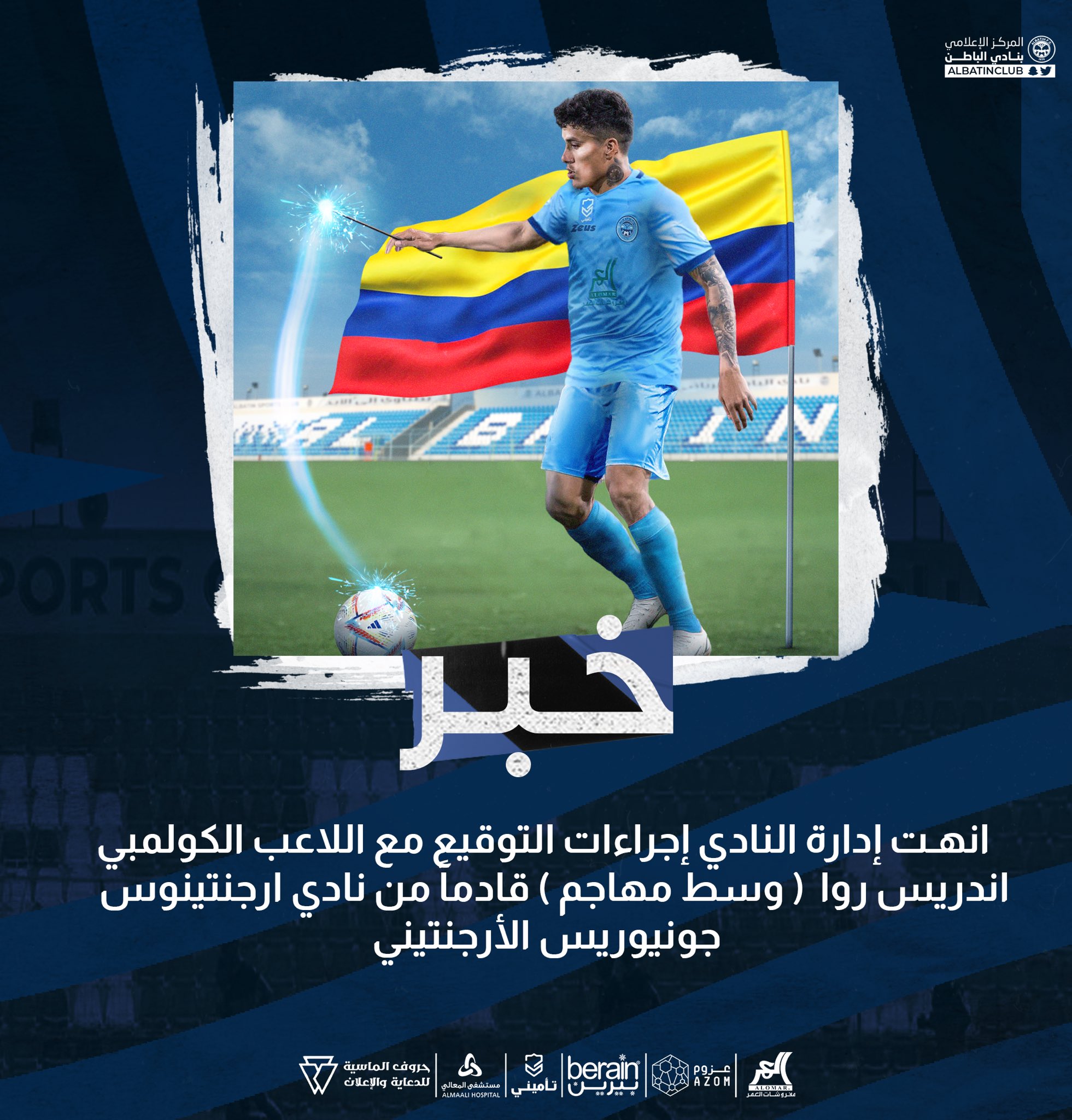 أنهت إدارة النادي إجراءات التوقيع مع اللاعب الكولومبي اندريس روا (وسط مهاجم)