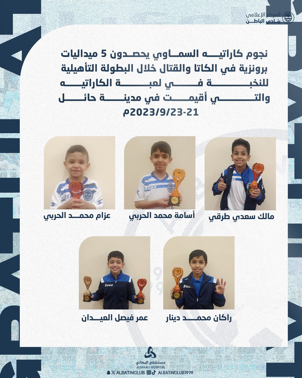 نجوم كاراتيه السماوي يحصدون 5 ميداليات برونزية في الكاتا والقتال 23 سبتمبر، 2023 / اخبار النادي, الالعاب المختلفة, الفئات السنية مبروووووووك Share via: Facebook X (Twitter) LinkedIn More