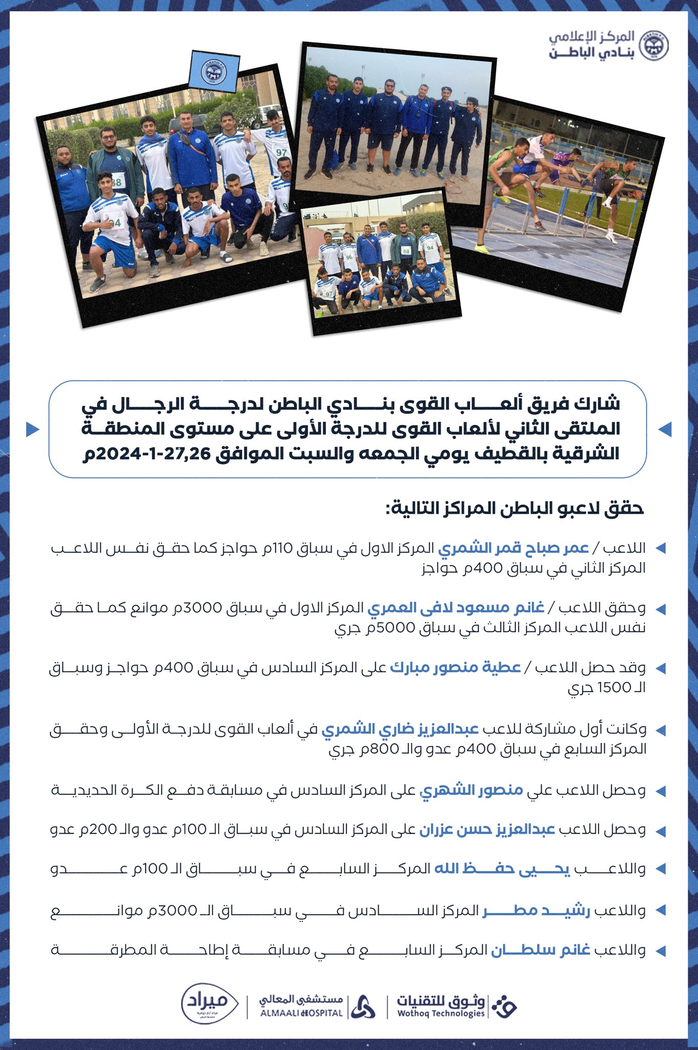 لاعبو قوى السماوي يحققون عدة مراكز في الملتقى الثاني لألعاب القوى للدرجة الأولى 28 يناير، 2024 / اخبار النادي, الالعاب المختلفة, الفئات السنية Share via: Facebook X (Twitter) LinkedIn More