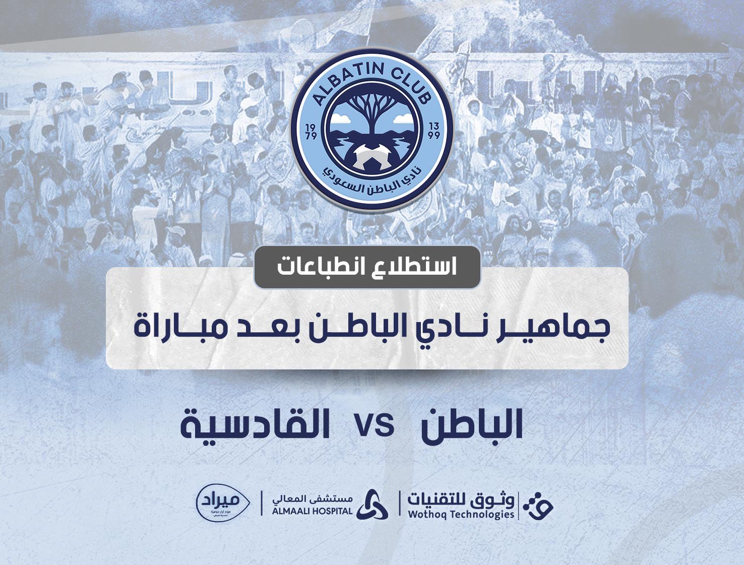 مباراة (الباطن × القادسية) 6 فبراير 2024م 6 فبراير، 2024 / اخبار النادي, استطلاع المباريات من خلال آراءكم البناءة تسعى إدارة نادي الباطن إلى تحليلها لدعم اتخاذ القرار بشأن تطوير منظومة الفريق الأول لكرة القدم المشاركة Share via: Facebook X (Twitter) LinkedIn More