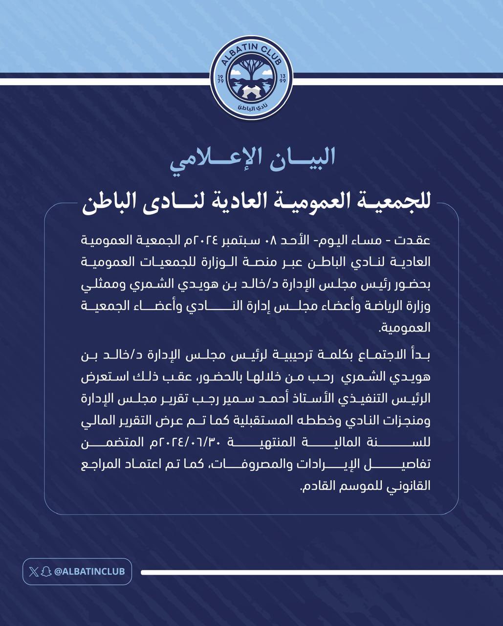 انعقاد الجمعية العمومية العادية لنادي #الباطن 9 سبتمبر، 2024 / اخبار النادي Share via: Facebook X (Twitter) LinkedIn More
