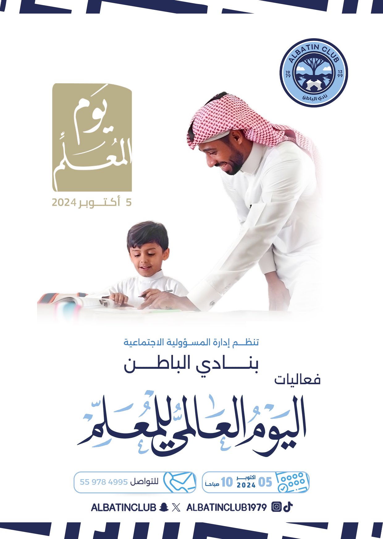 تنظم إدارة المسؤولية الاجتماعية بنادي الباطن فعاليات اليوم العالمي للمعلمين 5 أكتوبر 2024م ✍🏻 4 أكتوبر، 2024 / اخبار النادي, الفعاليات, المسؤولية الإجتماعية Share via: Facebook X (Twitter) LinkedIn More