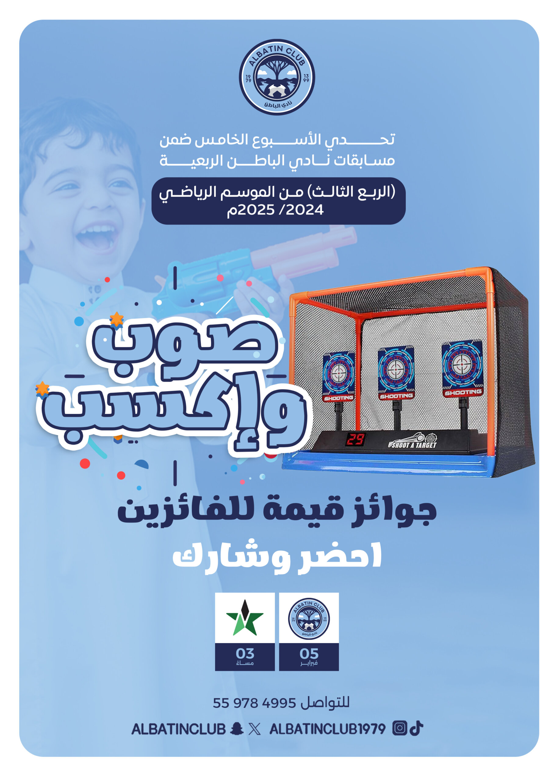 المشاركون والفائزون في مسابقة الإسبوع الخامس .. وانتظرونا إسبوعياً في مسابقات وجوائز قيمة 8 فبراير، 2025 / اخبار النادي, الفعاليات, المسؤولية الإجتماعية, انشطة تسويقية للمباريات نادي الباطن السعودي@albatinclub·Followالمشاركون والفائزون في مسابقة الإسبوع الخامس 🫶🏻 .. وانتظرونا إسبوعياً في مسابقات وجوائز قيمة 🎁 Watch on TwitterView replies5:43 PM · Feb 8, 20251ردCopy linkRead more on Twitter Share via: Facebook X (Twitter) LinkedIn More