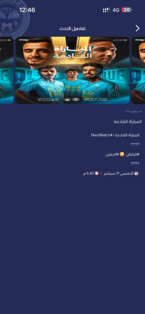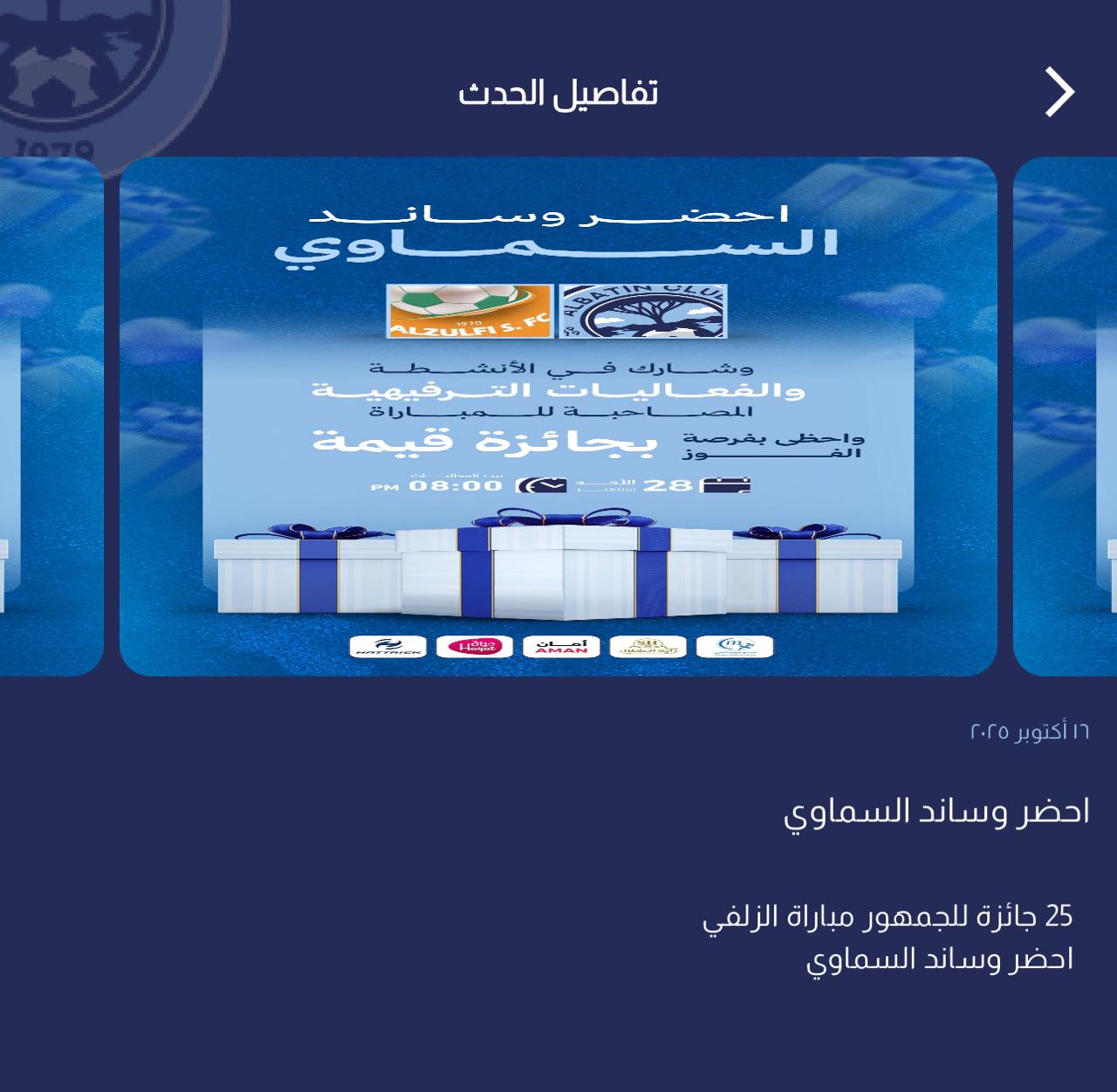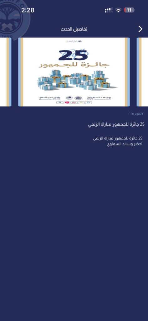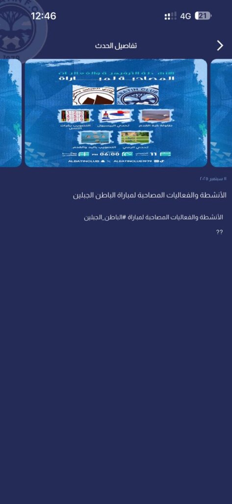 إعلانات مباريات الربع الأول من التطبيق الإلكتروني مباراة لمباراة الباطن × الجبلين 11 سبتمبر، الزلفي 28 سبتمبر 2025م