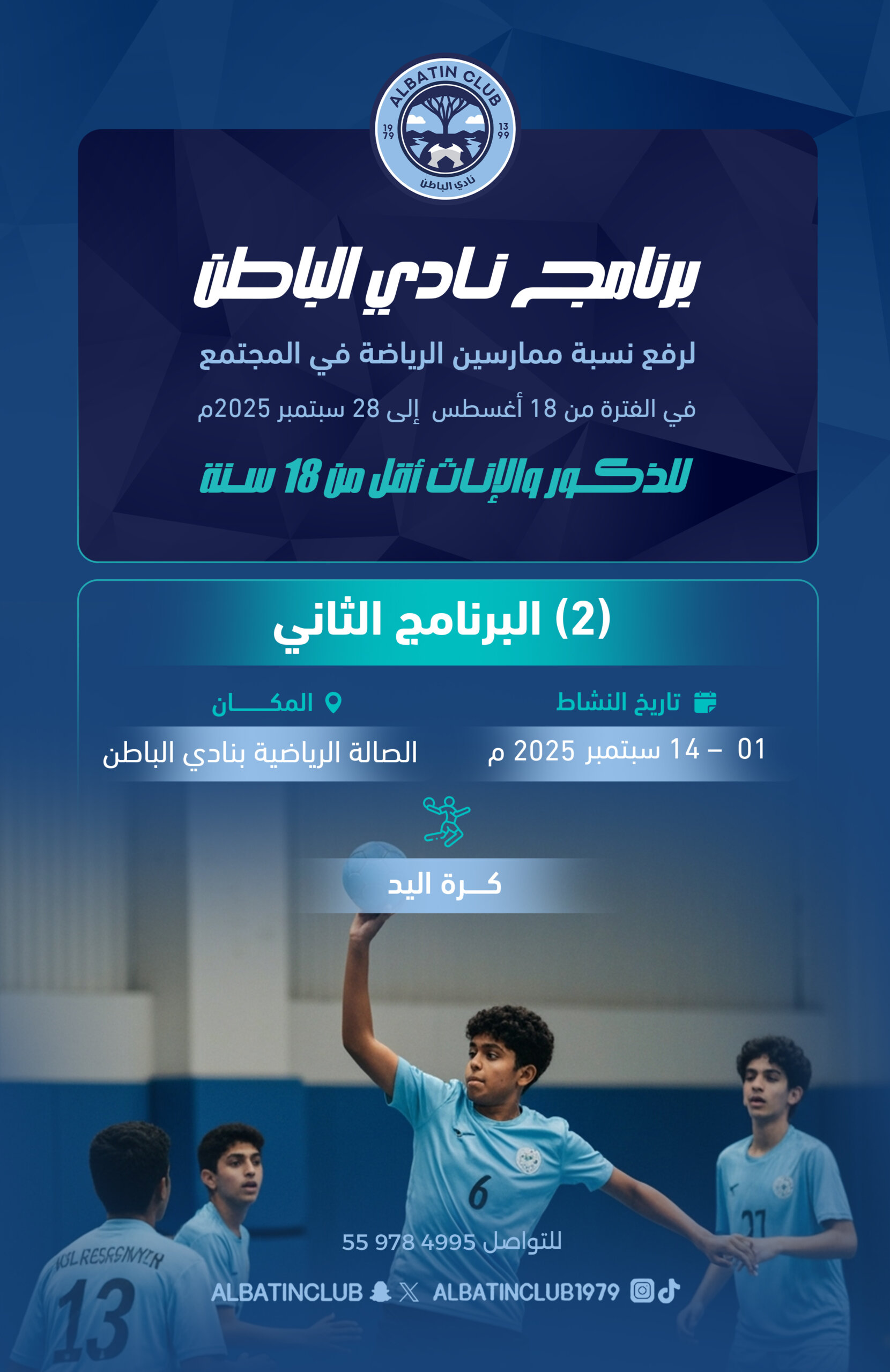 البرنامج الثاني (كرة اليد) 14 سبتمبر، 2025 / (2) البرنامج الثاني (كرة اليد), اخبار النادي, الفعاليات, المسؤولية الإجتماعية أدلة النشر والتوثيق لمنافسات البرنامج الثاني (كرة اليد) خلال الفترة من01 إلى 14 سبتمبر Share via: Facebook X (Twitter) LinkedIn More