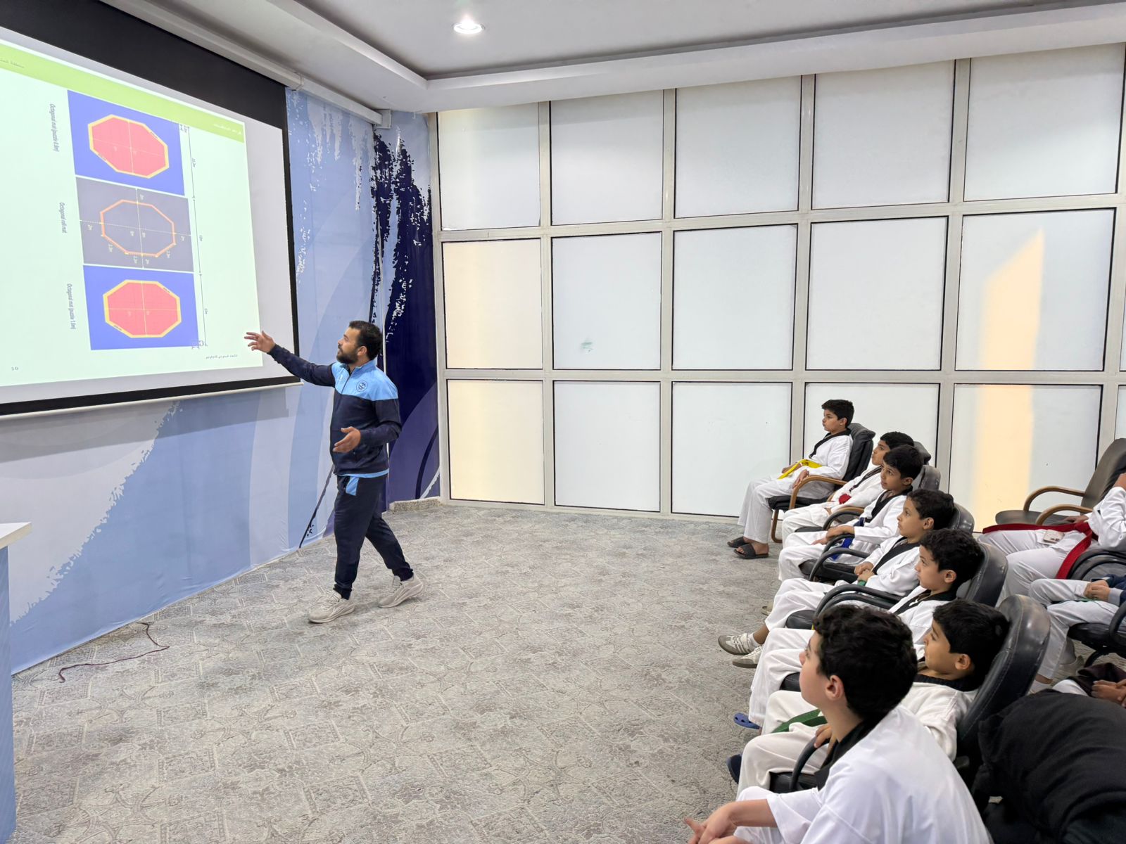 واستهدفت الورشة لاعبي فريق التايكوندو ، وتضمنت شرحاً دقيقاً للقواعد الرسمية للعبة، واللائحة الفنية للأندية، إضافة إلى آليات تعزيز الانضباط والمسؤولية داخل الفرق الرياضية.