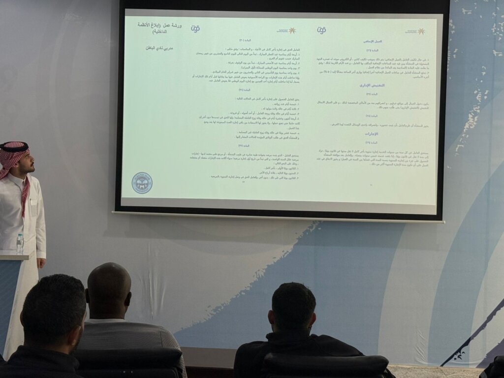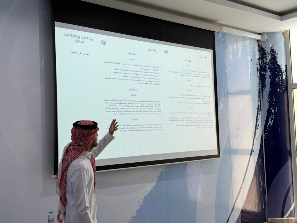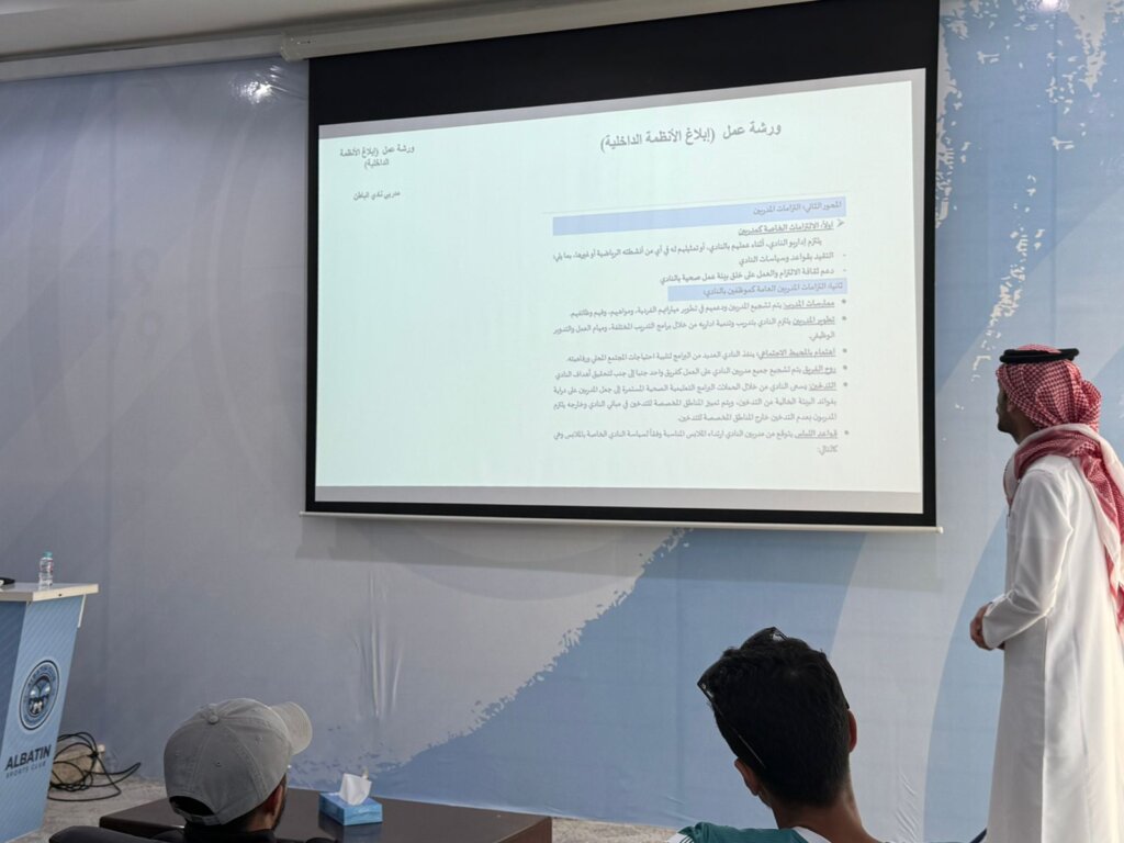 ورشة عمل متخصصة بعنوان الإبلاغ بأنظمة النادي الداخلية ( للمدربين )