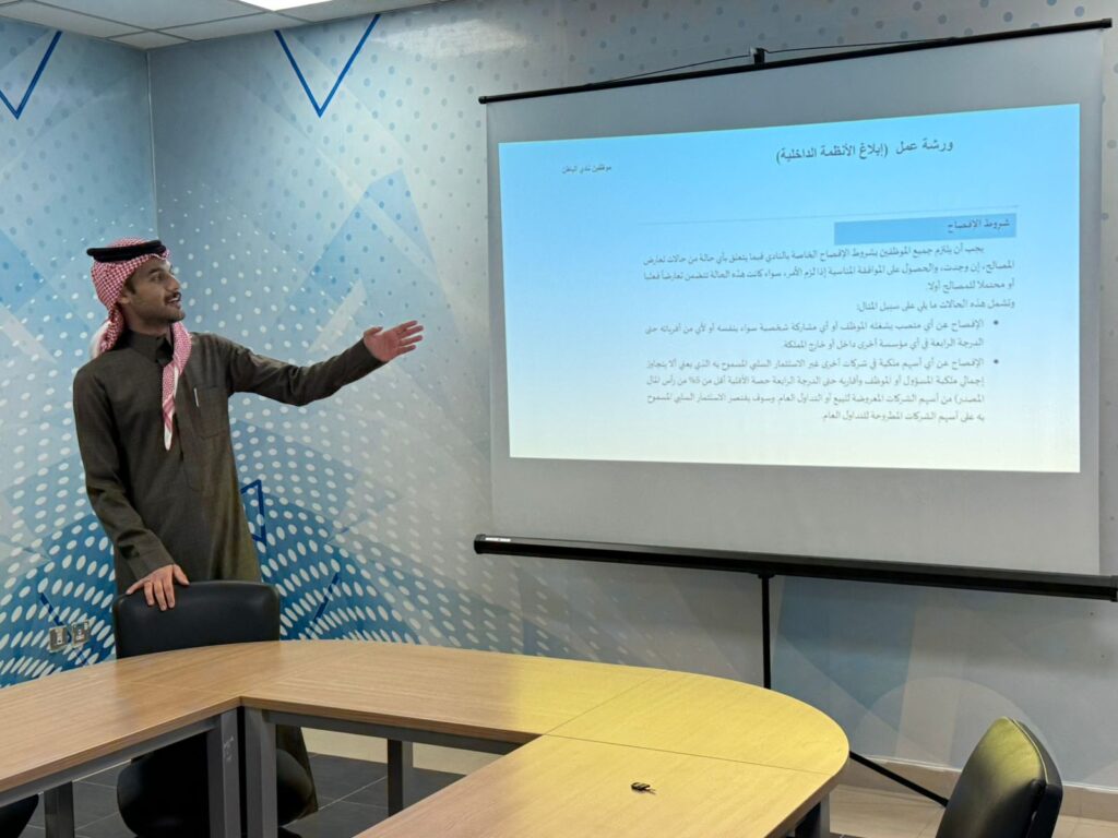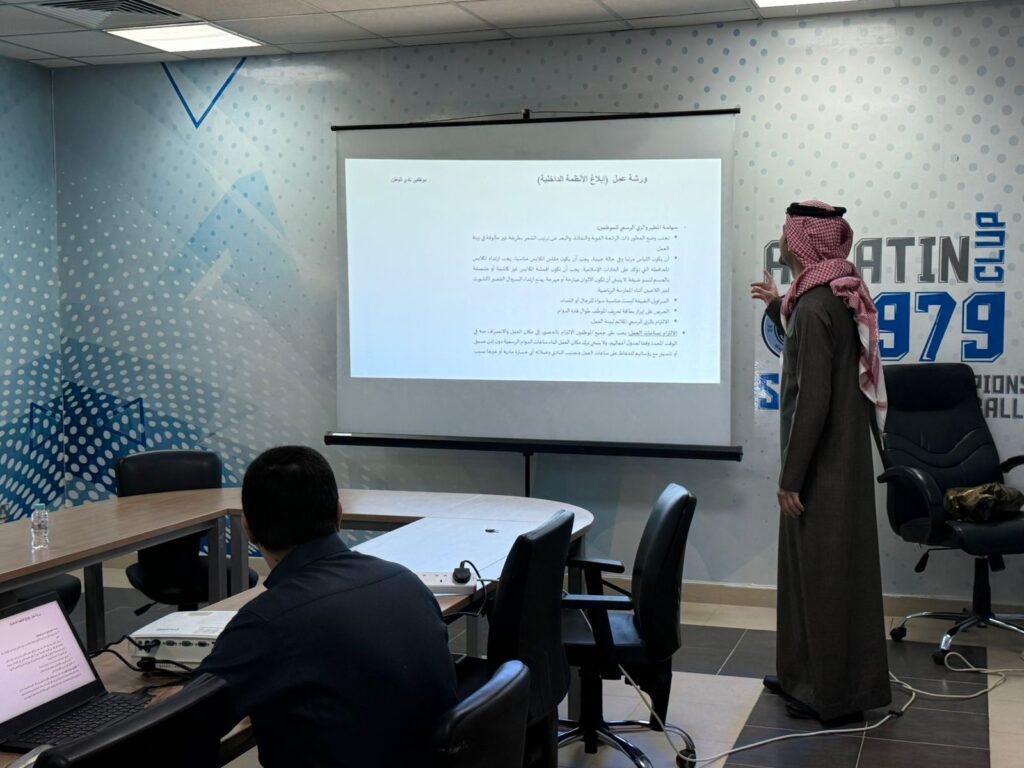 ورشة عمل بعنوان الإبلاغ بأنظمة النادي الداخلية ( منسوبي النادي من الموظفين )