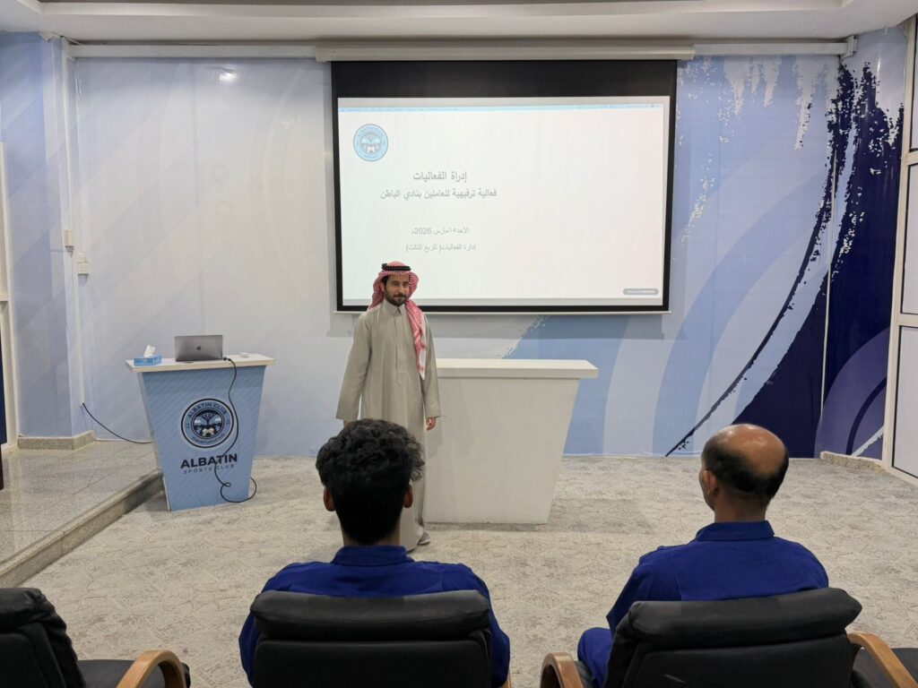 نظمت إدارة الفعاليات بنادي الباطن يوم الأحد 15مارس 2026م فعالية ترفيهية للعاملين بالنادي، تضمنت عدداً من الأنشطة الرياضية الخفيفة، من بينها البلياردو وكرة الطاولة وكرة السلة، وذلك ضمن الأنشطة الترفيهية والفعاليات غير المصاحبة للمباريات خلال الربع الثالث من الموسم الرياضي 2025- 2026م