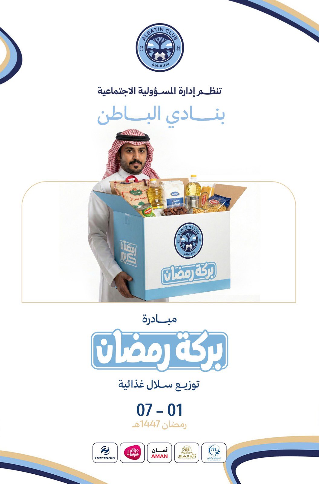 💙 أطلق نادي #الباطن مبادرة بركة رمضان🛍️ لتوزيع سلال غذائية لمن يستحقها