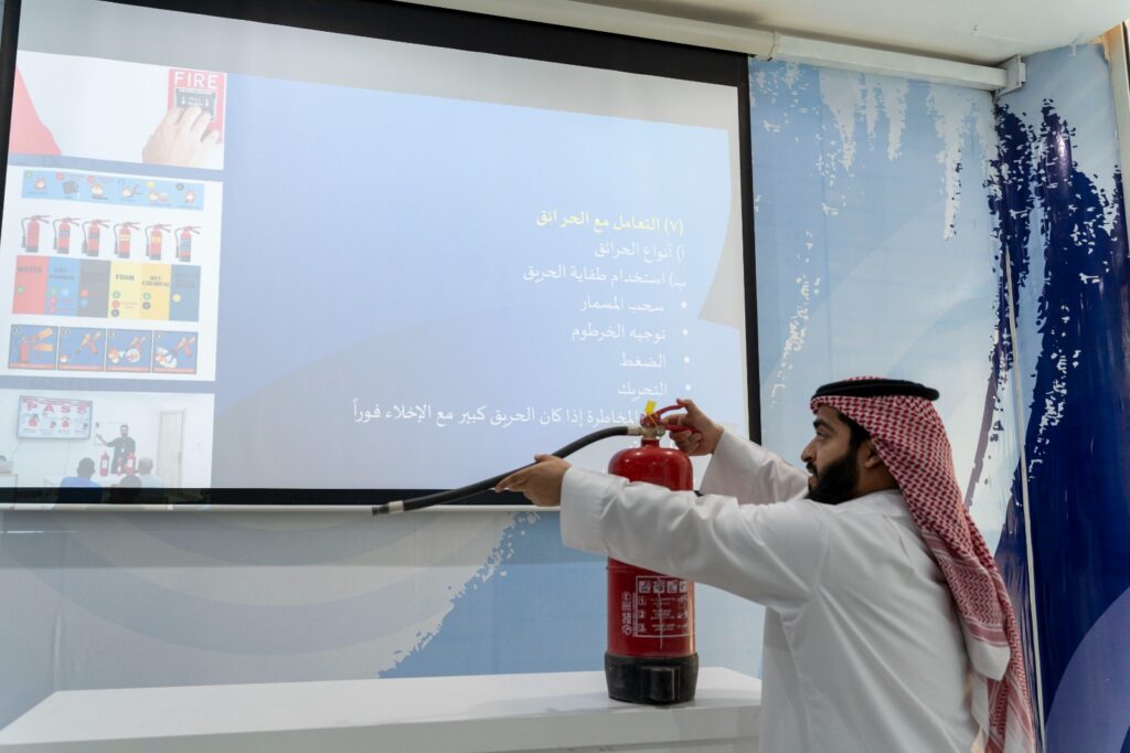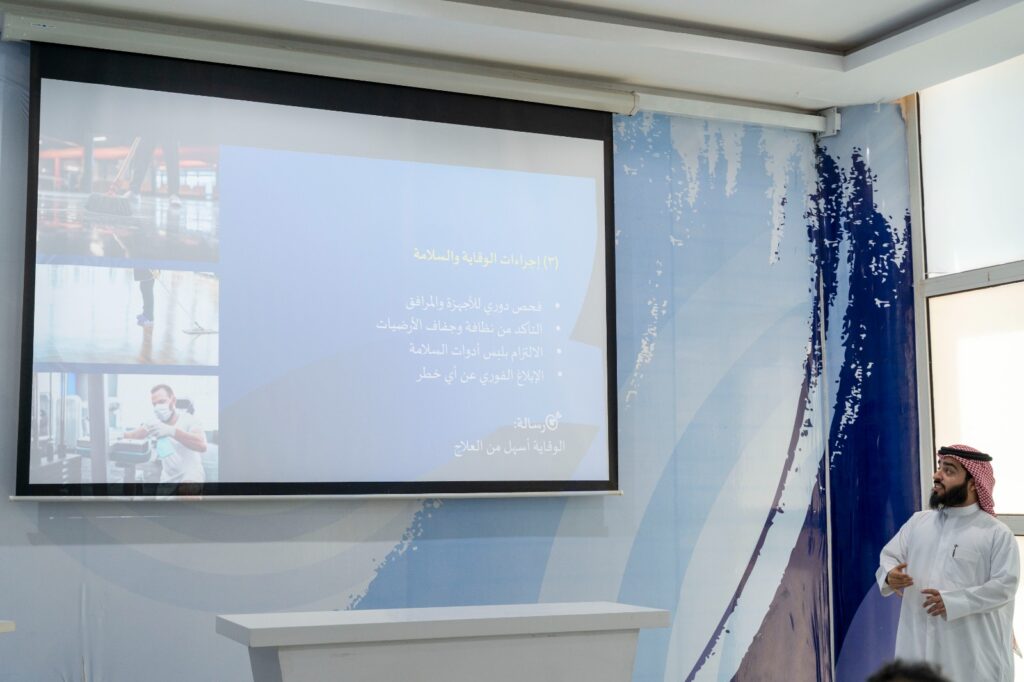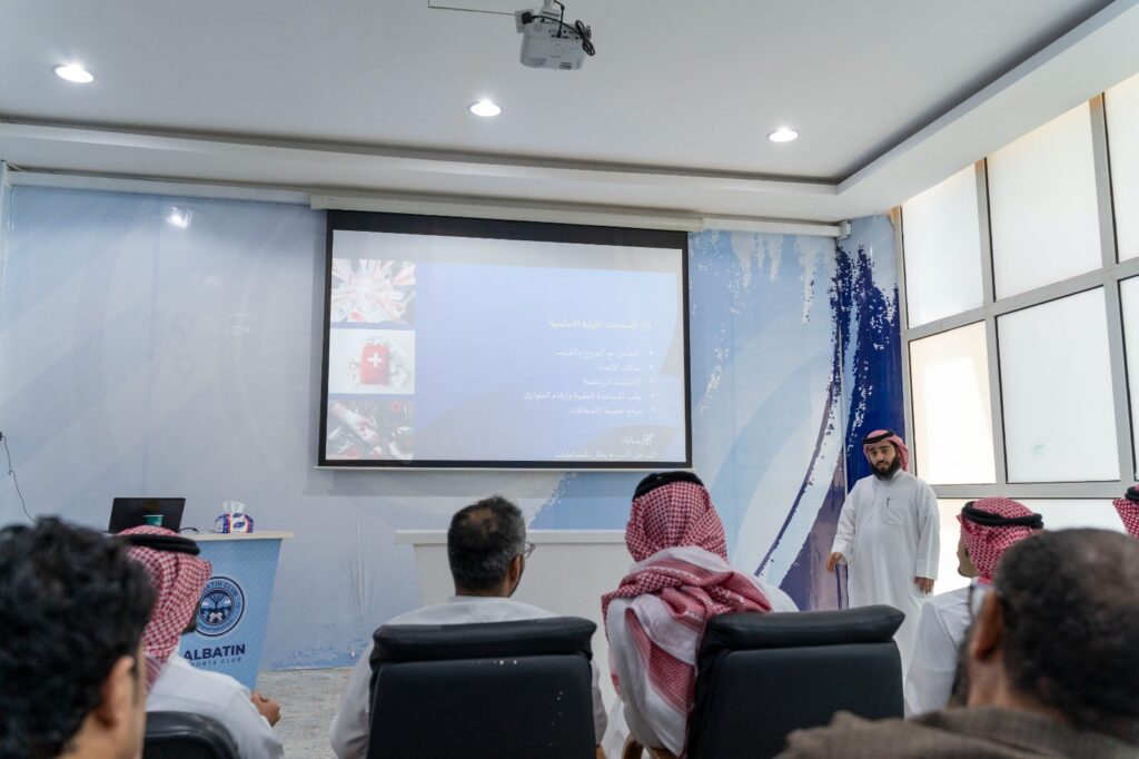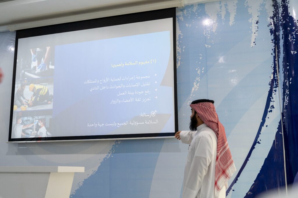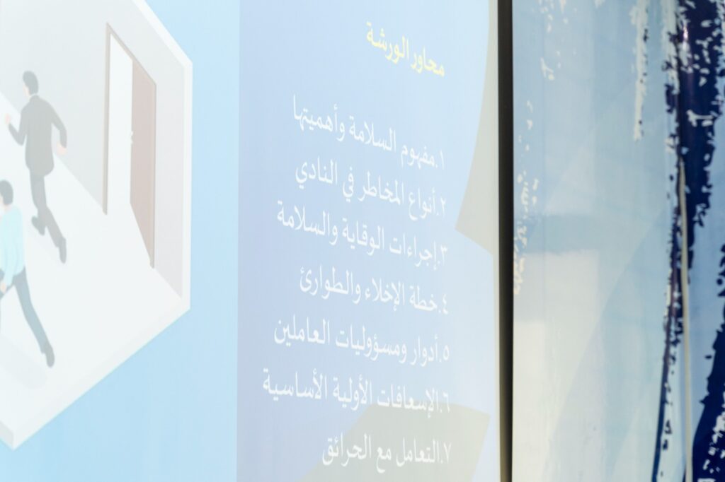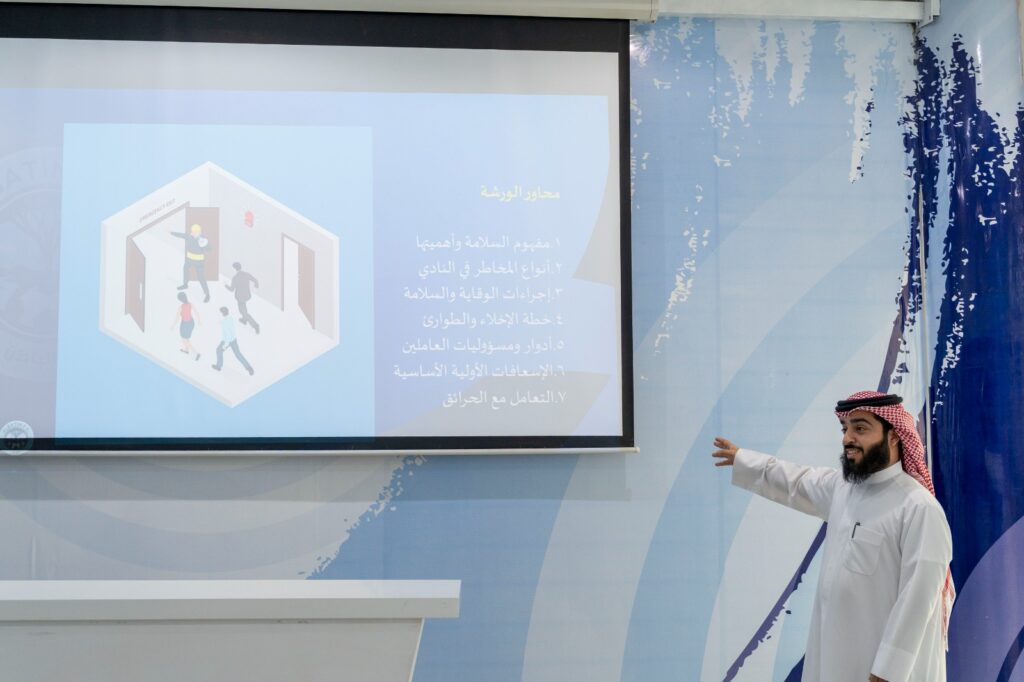 نفذت إدارة الأمن والسلامة في نادي الباطن ورشـــة عــمل بعنوان (إجراءات السلامة والإخلاء) ( الموظفين والعاملين بالنادي )