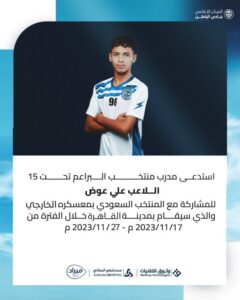 مدرب منتخب براعم 15 سنة يستدعي لاعب #الباطن علي عوض للإنضمام لمعسكر المنتخب
