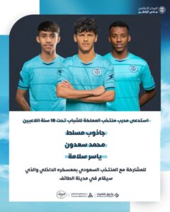 مدرب منتخب الشباب تحت 18 سنة يستدعي لاعبين الباطن ( جاذوب مسلط ، محمد سعدون ، ياسر سلامة ) للإنضمام لمعسكر المنتخب