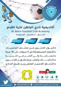 أكاديمية نادي الباطن لكرة القدم تعلن عن إستقبال اللاعبين