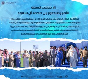زار صاحب السمو الأمير منصور بن محمد آل سعود محافظ حفر الباطن اليوم الأربعاء، نادي الباطن، وكان في استقباله رئيس مجلس إدارة النادي الأستاذ ناصر الهويدي وأعضاء مجلس الإدارة وقام سموه بجولة تفقدية على منشأة النادي اطلع من خلالها على سير العمل في تطوير المنشأة والتقى سموه بمندوب وزارة الرياضة المهندس قايد العتيبي مدير ادارة