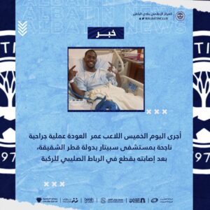 اجرى اللعب عمر العودة عملية جراحية ناجحة بمستشفى سبيتار بدولة قطر الشقيقة بعد اصابته بقطع في الرباط الصليبي للركبة