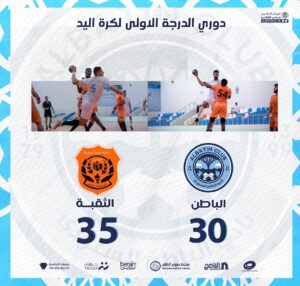 خسر فريق يد الباطن من فريق القادسية بنتيجة 30-35 ضمن منافسات دوري الدرجة الأولى لكرة اليد
