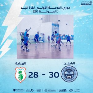 فاز فريق يد الباطن على فريق الهدى بنتيجة 30-28 ضمن منافسات دوري الدرجة الأولى لكرة اليد