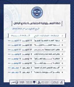 خطة المسؤولية الاجتماعية بنادي الباطن (الربع الثاني موسم 2023/2022م)