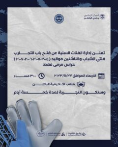 اقامت إدارة النادي ورشة عمل يوم الثلاثاء 28/11/2023 م بعنوان استراتيجية النادي 2021م- 2025م تم خلالها شرح اهداف الخطة الاستراتيجية وابرز المبادرات والخطط الزمنية للتنفيذ، بحضور لاعبي ومدربي فريق الناشئين لكرة القدم، قدمها مدير العلاقات العامة الاستاذ / رائد الحربي .