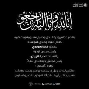 إِنَّا لِلَّهِ وَإِنَّا إِلَيْهِ رَاجِعُونَ 11 أبريل، 2024 / اخبار النادي, المسؤولية الإجتماعية إِنَّا لِلَّهِ وَإِنَّا إِلَيْهِ رَاجِعُونَ قراءة المزيد »