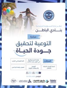 تنظم إدارة المسؤولية الاجتماعية بنادي #الباطن مبادرة حول التوعية لتحقيق جودة الحياة وتستهدف من خلالها تثقيف الأسرة و الأبناء وتدريبهم تجاه موضوعات متنوعة