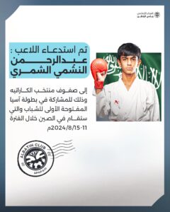 استدعاء بطل السماوي عبدالرحمن الشمري لصفوف المنتخب السعودي للكاراتيه 6 أغسطس، 2024 / اخبار النادي استدعاء بطل السماوي عبدالرحمن الشمري لصفوف المنتخب السعودي للكاراتيه قراءة المزيد »