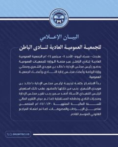 نفذت الإدارة القانونية بنادي الباطن ورشة عمل الثلاثاء 10 سبتمبر 2024م للاعبي النادي حول (إبلاغ اللوائح والأنظمة) وقد تضمنت على عدد من الموضوعات الخاصة بالتزامات النادي تجاه المدربين وكذلك مسؤوليات والتزامات المدربين داخل بيئة العمل، وتحرص الإدارة القانونية بشكل ربعي على تنفيذ مثل هذه الورش التعريفية لتأصيل مفاهيم وبنود اللوائح والأنظمة لدى منسوبي النادي.