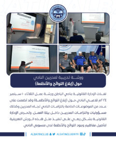 ورشــــة تدريبية لمدربين النادي حول (إبلاغ اللوائح والأنظمة)