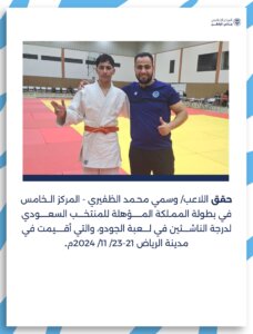 بطل السماوي وسمي الظفيري يحقق المركز الخامس في بطولة المملكة للجودو المؤهلة للمنتخب.