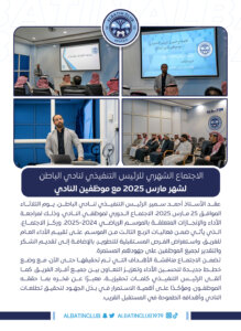 الاجتماع الشهري للرئيس التنفيذي لنادي الباطن لشهر مارس 2025 مع موظفين النادي قراءة المزيد »
