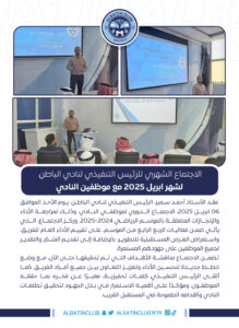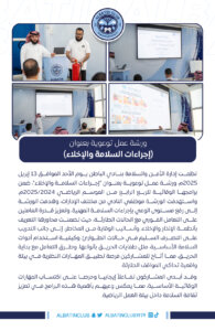 نظمت إدارة الأمن والسلامة بنادي الباطن يوم الأحد الموافق 13 إبريل 2025م، ورشة عمل توعوية بعنوان “إجراءات السلامة والإخلاء”، ضمن برامجها الوقائية للربع الرابع من الموسم الرياضي 2024/2025م، واستهدفت الورشة موظفي النادي من مختلف الإدارات، وهدفت الورشة إلى رفع مستوى الوعي بإجراءات السلامة المهنية، وتعزيز قدرة العاملين على التعامل الفوري مع الحالات الطارئة، حيث تضمنت […]