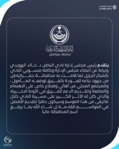 تنظمها إدارة المسؤولية الاجتماعية بنادي الباطن تدريب الشباب + 18 سنة ونشر المعرفة في مجالات التحكيم الرياضي والتسويق والإعلام الرياضي