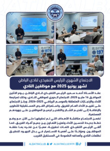 الاجتماع الشهري للرئيس التنفيذي لنادي الباطن لشهر يونيو 2025 مع موظفين النادي