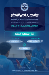 المبادرة الثالثة : صحتك أمانة بالتعاون مع قسم علوم الرياضة والنشاط البدني بجامعة حفر الباطن@UHB_University 👨⚕️ الفعالية الأولى لمبادرة صحتك أمانة 22 – 26 فبراير 2026م🥗 ورشة تغذية صحية🩺 فحوصات بدنية وصحية للرجال📍 بتنظيم المسؤولية الاجتماعية بنادي الباطن