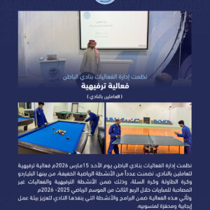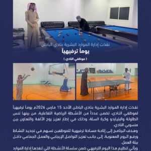 المسؤولية الإجتماعية نظمت إدارة الفعاليات قراءة المزيد نفذت إدارة الموارد قراءة المزيد أدلة النشر والتوثيق قراءة المزيد نفذت إدارة الموارد قراءة المزيد المبادرة الثالثة : قراءة المزيد نفذت إدارة الحوكمة قراءة المزيد المبادرة الثانية : قراءة المزيد نفذت إدارة الحوكمة قراءة المزيد إظهار المزيد
